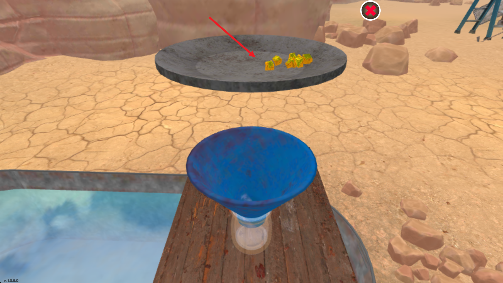 1、使用水流来堆矿石作出处理,并且通过摇动盘子来消除多余的可力,从一堆矿石中提取黄金颗粒。