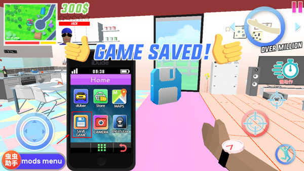 1、打开沙雕模拟器游戏,进入游戏后,点击左侧手机按钮;