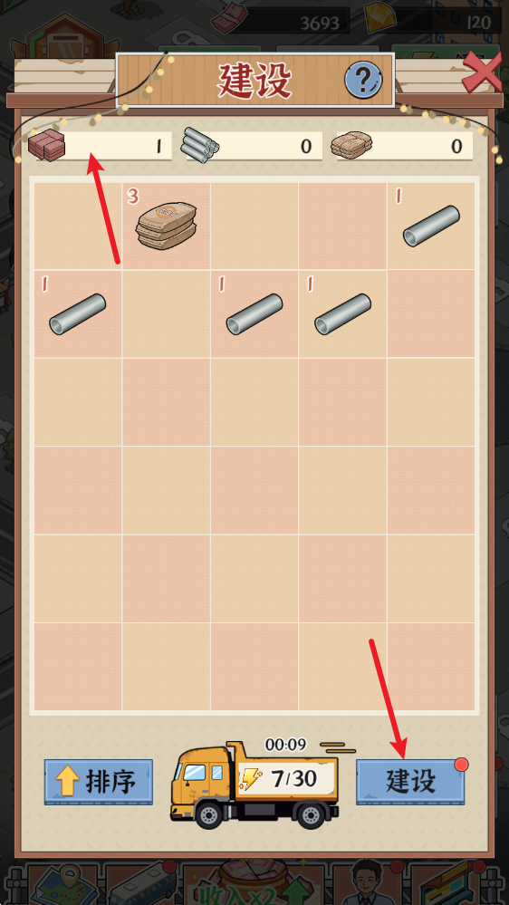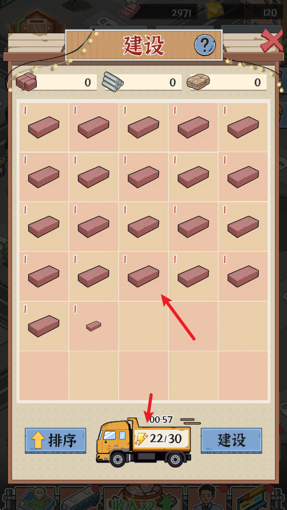 2、进入后需要消耗体力来获得建材。