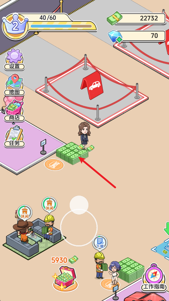 7、来到左上角的区域在,在这里我们可以去升级自己的员工,或者是顾客。