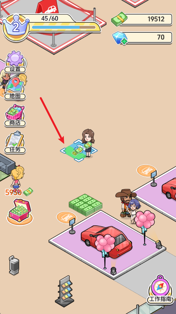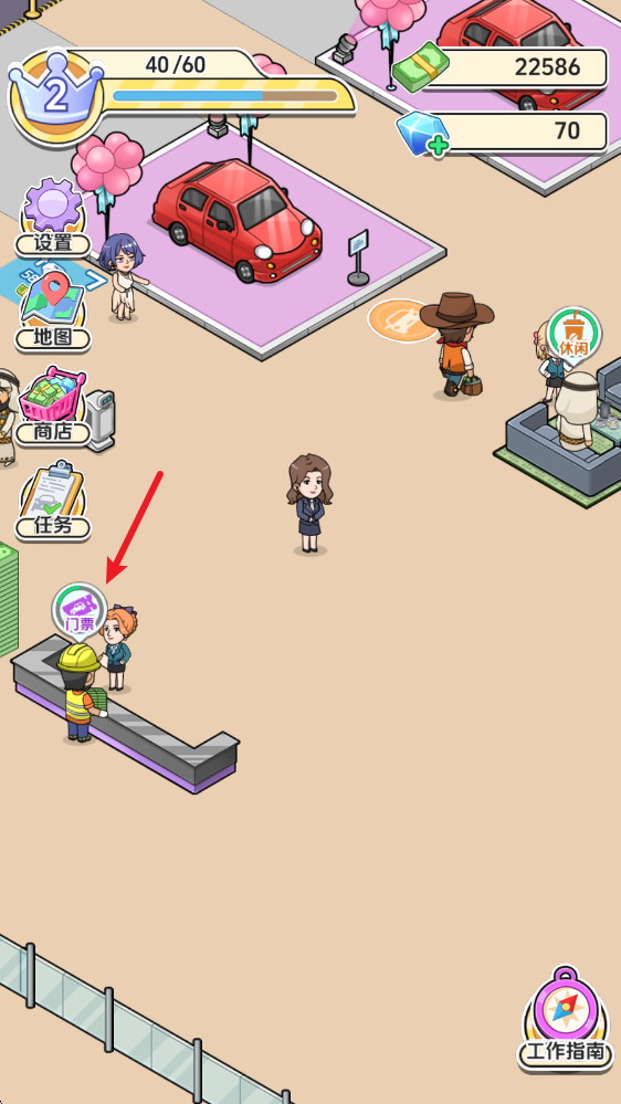 1、进入游戏后,我们可以简单的设置一下展会就可以开始经营,首先客人会在前台购买门票。