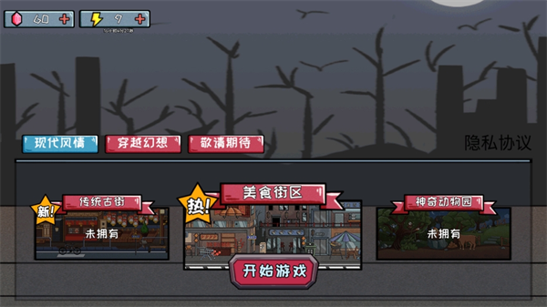 2、按照屏幕上显示出来的各种闯关模式:传统古街、美食街区、神奇动物园,惊奇石窟、埃及风光、比武招亲等等选择自己想要挑战点击进入开始躲猫猫。