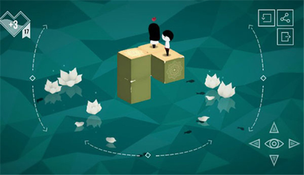 在昔Yesterday中,玩家将扮演一个女孩,通过转动视角、转动方块以及控制女孩在同一平面相连的方块上行走,达到与男孩的幻影相遇的目的。每一个关卡结束时,玩家都可以获得一个承载着男孩女孩记忆碎片的物品,从中窥见背后的故事,更加深入地了解剧情。