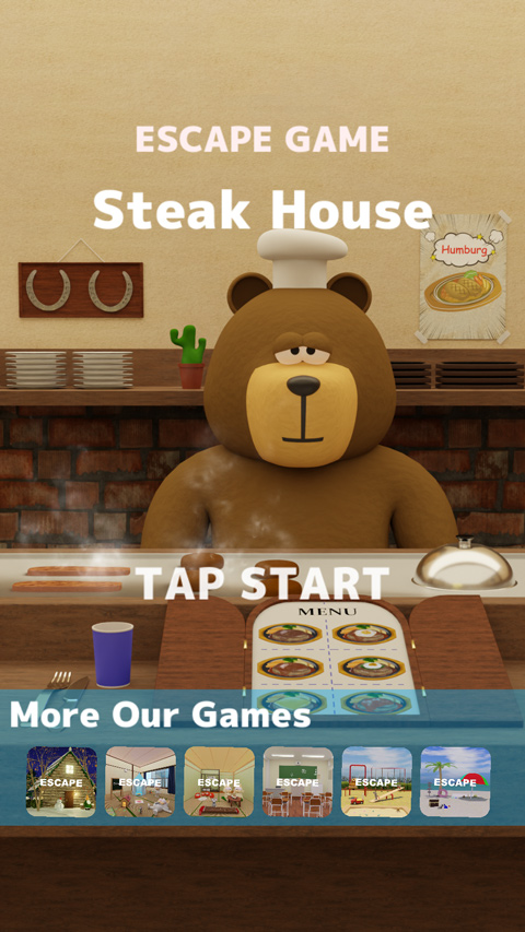1、在本站下载打开逃脱游戏牛排店游戏,点击屏幕开始;