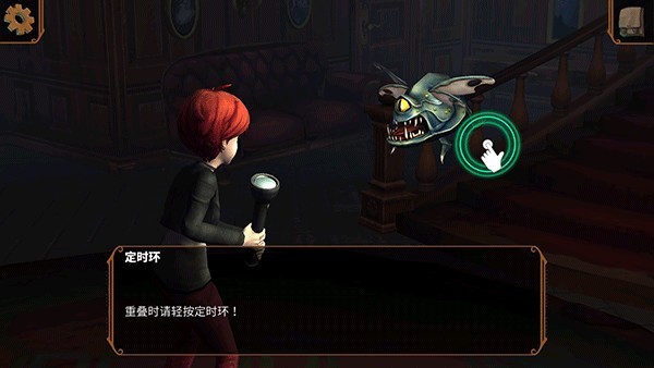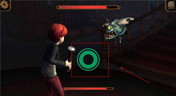 4、当对话结束之后,便会唤醒沉睡的鬼怪,绿色圈是攻击的方式,在两个绿色圈重合的时候点击便可以更加精准的命中怪物,当然怪物也会攻击主角。