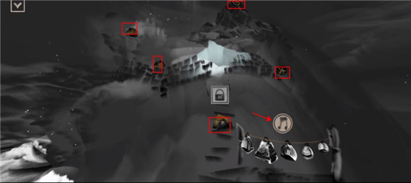 4、如图所示点击化石的位置将化石显现出来,然后点击旁边音乐按钮,奏响音乐将道路显现出来。