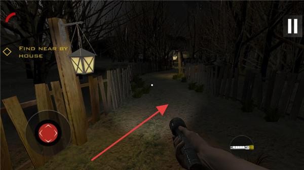 3、依据【FINDNEARBYHOUSE】的提示,按箭头方向前进寻找附近的房子。