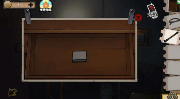 6、然后我们回下水道,用钥匙打开如图所示的锁,获得木板后去警卫室,用小刀划开垃圾桶,使用夹子即可得到湿纸片,放在警卫室灯上烘干即可获得下水道密码箱密码。