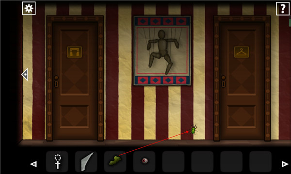 6、出来往右边走,来到墙上有一个甲虫的地方,点击这个甲虫进行捕捉,在这个地方是无法直接捕捉到这个甲虫的,首先将之前餐盘上面发现的黏乎乎的东西放到上面,甲虫会粘在上面这样才能获取。