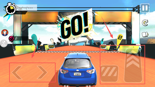 2、左侧控制方向,右侧控制油门与刹车,滑动屏幕实现漂移操作。