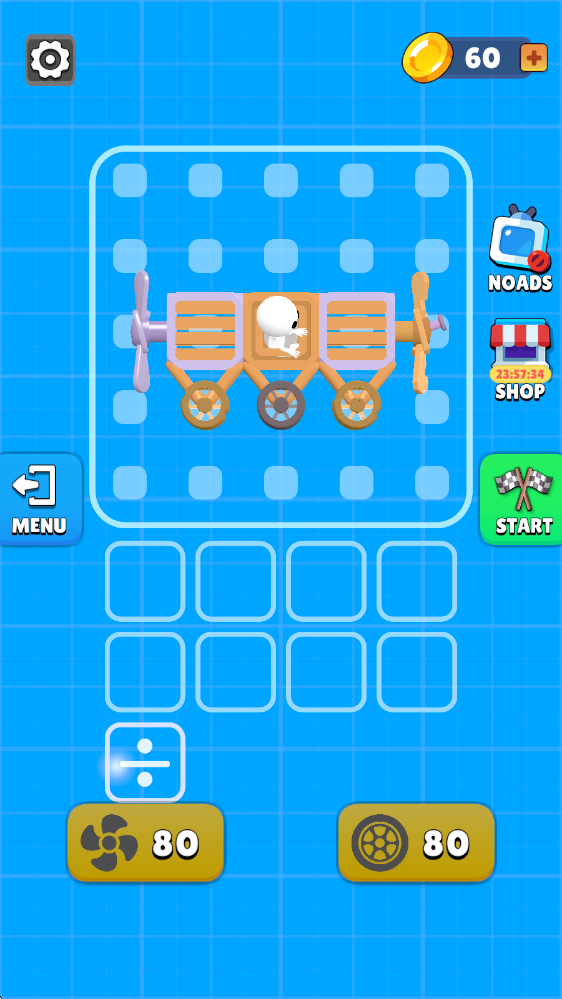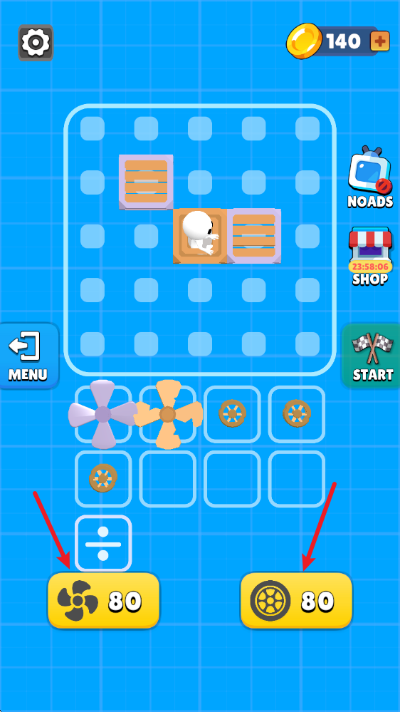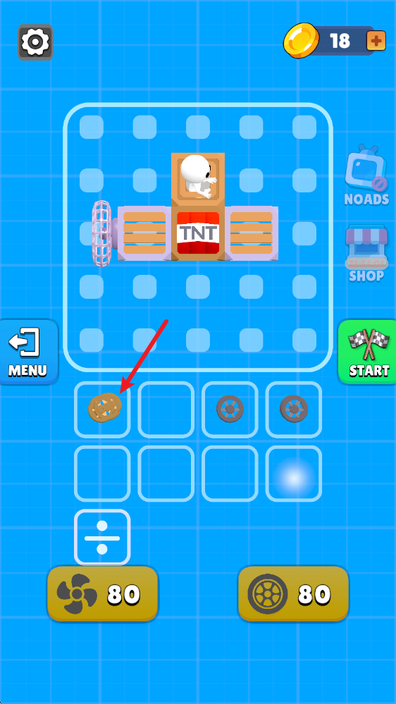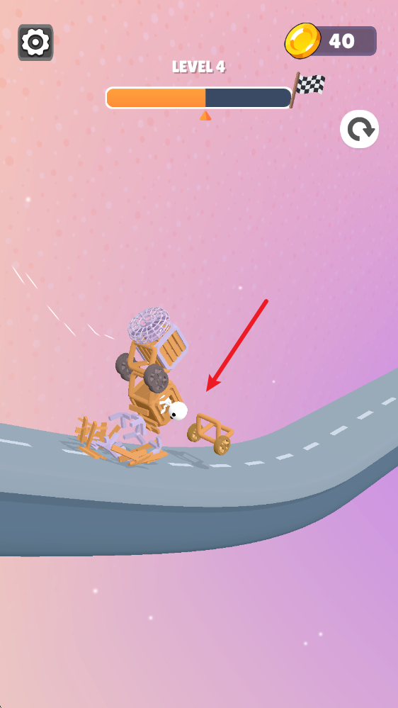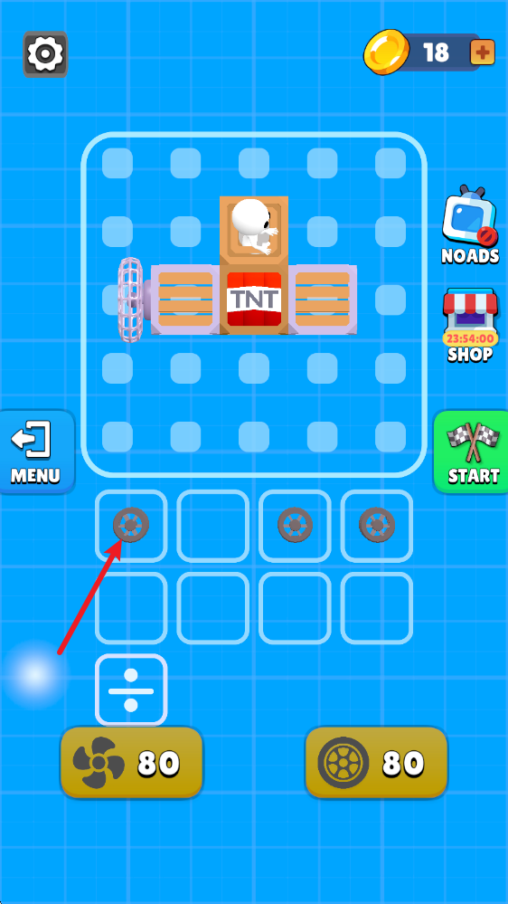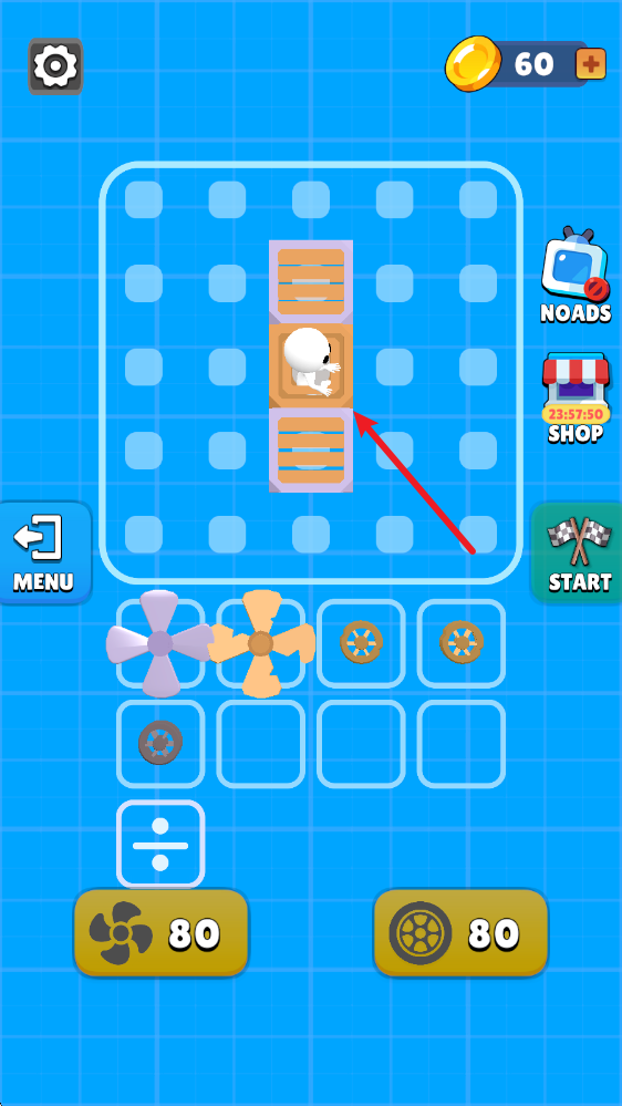 5、汽车组建好之后,我们就可以进入场景中进行挑战了,点击屏幕即可让风扇转动,提供前进的动力。