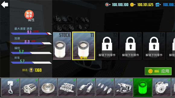 4、有些改装零件需要消耗金币解锁,有些需要完成任务才能解锁