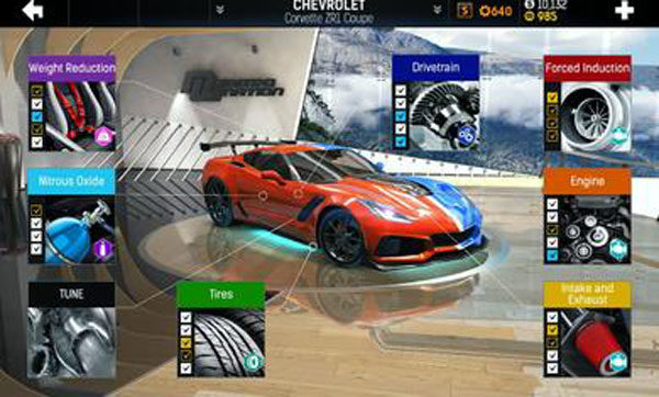 5、深度改装系统:可自由升级引擎、轮胎、变速箱等33项零件,提升速度极限。