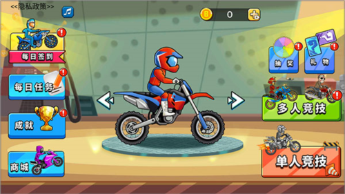 6、会有非常多不同的道具和礼物,可以让玩家一直保持新鲜感来帮助自己提升自己摩托车的性能。