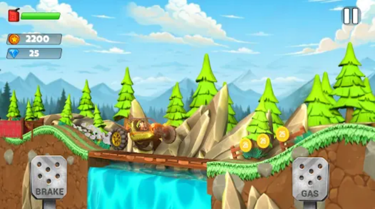 3、使用爬赛车在屏幕上控制的卡车赛车,免费爬坡游戏,更多挑战性关卡。