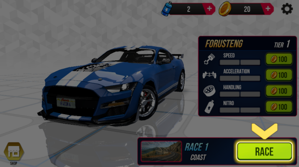 2、点击开始后,点击屏幕右下方的RACE开始我们的竞速。