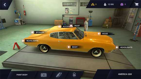 6、在车库界面点击汽车可以对不同的部位进行改装,点击对应部位就可以更换配件。