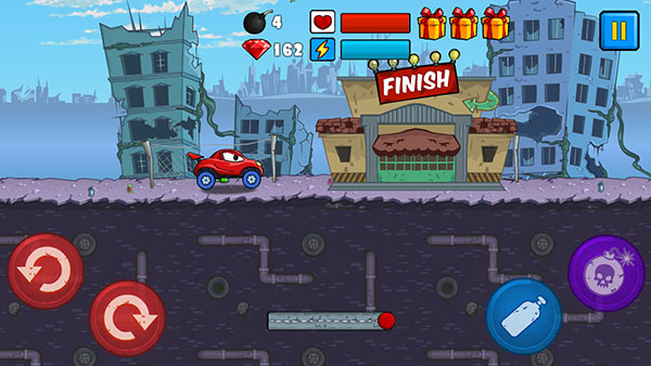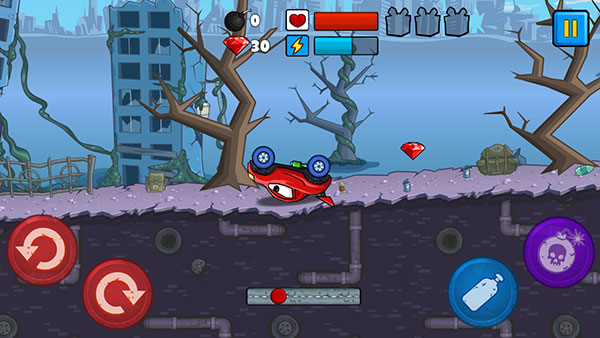 汽车吃汽车是一款十分有趣的2d横版赛车竞速游戏,英文名也叫CarEatsCar,游戏的玩法和传统的飙车游戏玩法不太一样,它并不是在赛道上飙车,操作方法也不是只要让赛车不冲出跑道就行了,反而游戏的玩法比较像登山赛车游戏,玩家要操控自己的遥控汽车在曲折的山路上前进登上终点即可,但是在你登顶的路上会不断遇见敌人阻碍你,所以可以使用炸弹摧毁敌人,还可以收集路上的道具来攻击敌人。