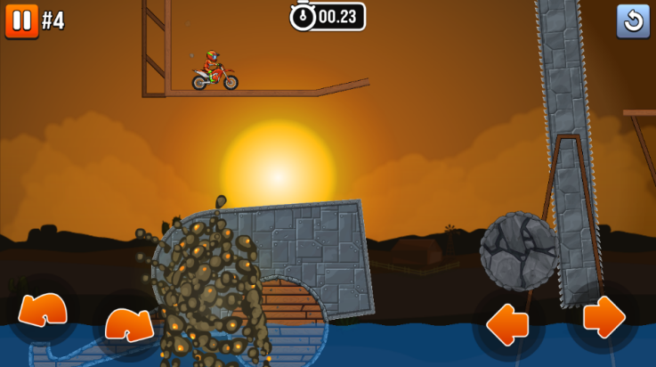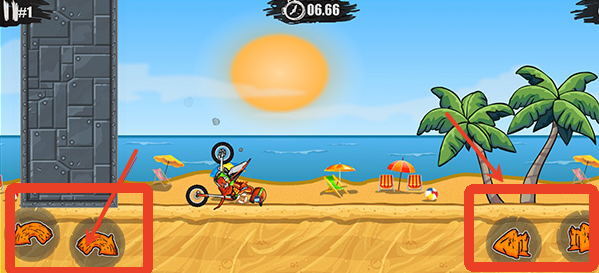1、玩家开始游戏,左边的按钮前后翘头,右边则是控制摩托车前进和后退。