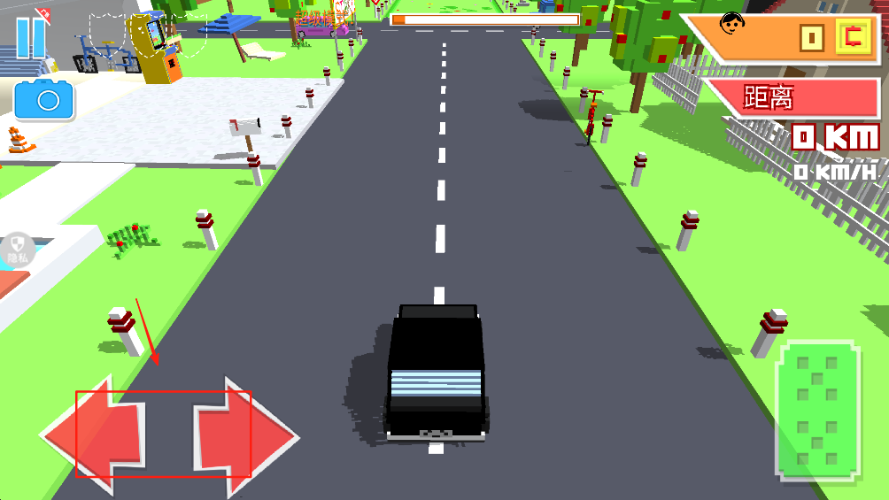 3、使用屏幕左下角的虚拟摇杆控制车辆方向,避免碰撞障碍物,安全驾驶。