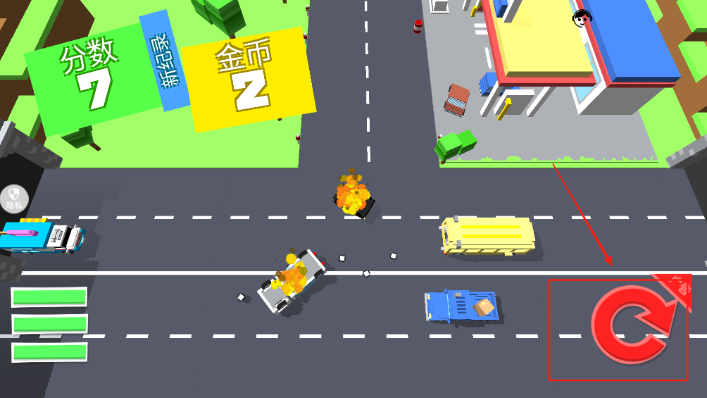 4、当发生碰撞或需要重新开始时,点击屏幕右下角的重置按钮,快速恢复游戏状态。