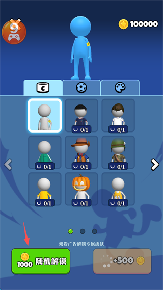 5、点击屏幕左下角的“随机解锁”,可以随机获得角色的外观皮肤。