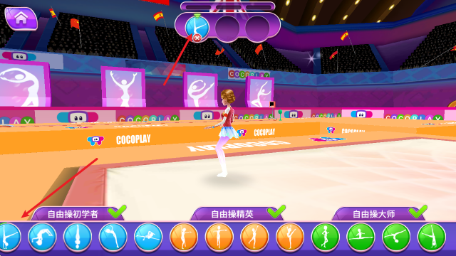 2、以自由体操为例,首先我们可以从下方各种动作中选出三个作为比赛的内容。