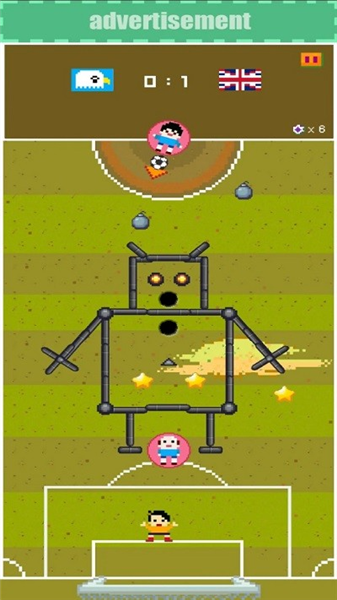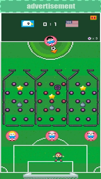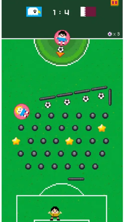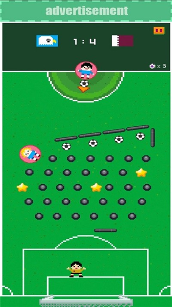 1、玩家需要在限定的球数内赢得当场的比赛,只有赢得比赛才能开启下一关卡,而每个国家关卡将会有重重的障碍来阻止你的进球。