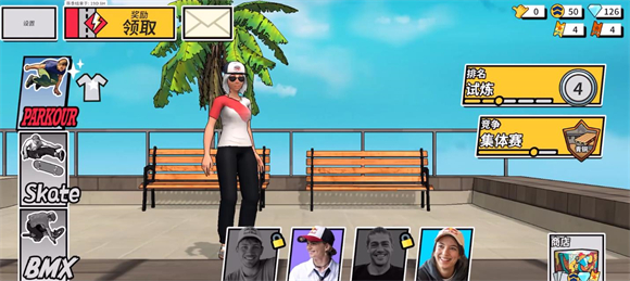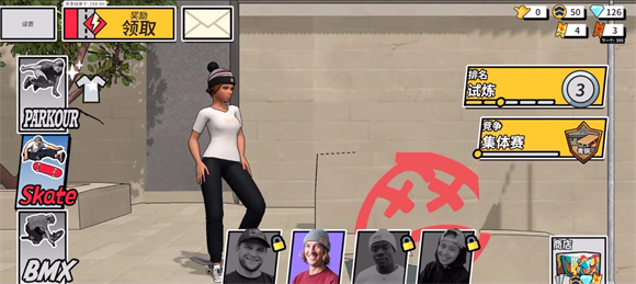 6、在主界面点击左侧的按钮可以切换不同的模式来游玩,目前有三种模式,分别是跑酷、滑板和自行车。
