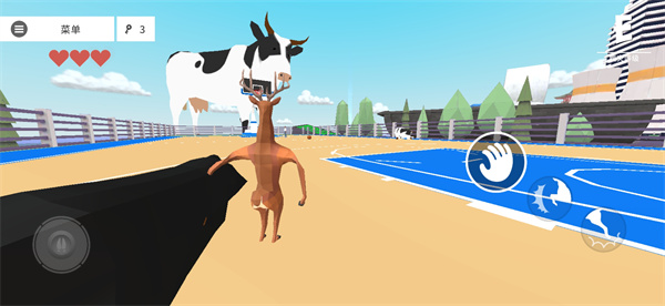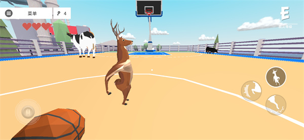 有人可能就疑惑了,奶牛去哪找?别急,整个地图里一共三只奶牛,复活的时候看见远处最大的牛,我们向那里跑过去,就会看见篮球场,里面有两个奶牛在玩耍,随便抓一只走就可以了。