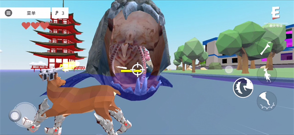 看见最高的大楼上有一只不愿下来的大熊,但是你别轻易招惹它哦,巨型的生物没一个是塑料,而已这家伙妥妥的就是BOOS级别的生物,激光可以秒你。