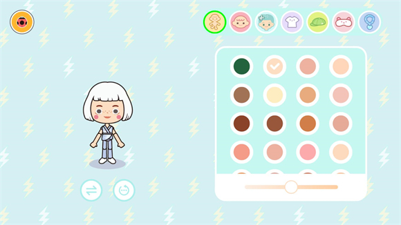 3、在编辑界面玩家可以自由更改角色的五官、肤色、服装等内容。