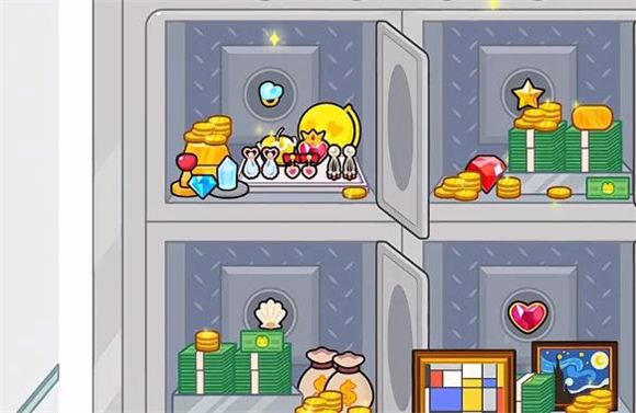 4、银行三楼,打开四个保险柜,将贝壳、五角星、戒指、爱心放好就能打开隐藏大门,然后点击墙壁上的画会出现一个拉杆,点击这个拉杆可以打开金库解锁新的区。