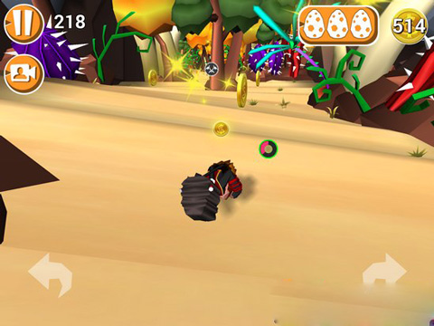 -这里拥有明快的游戏节奏,跟随道路不断前进,收集恐龙蛋,越多重重障碍