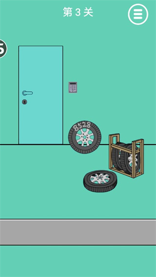 取下轮胎上的抹布,用抹布擦拭脏的轮胎,就可以看到密码(8528),把密码输进密码锁,点击“enter”即可开门。