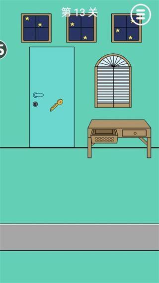 窗户上的星星与抽屉上的密码一一对应,将没有星星的地方在抽屉上填满,打开抽屉拿出钥匙,开门。