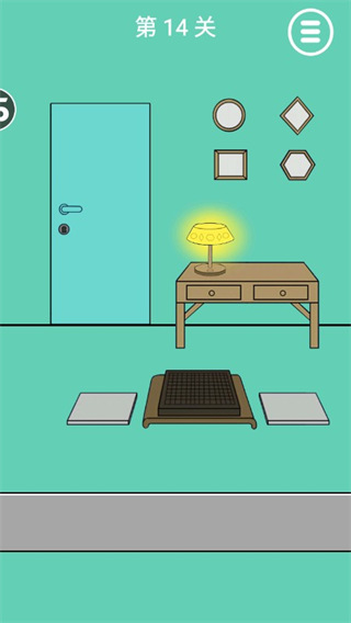 点击台灯。根据台灯上的图形图案,依次点击墙上的图案,取出钥匙开门。