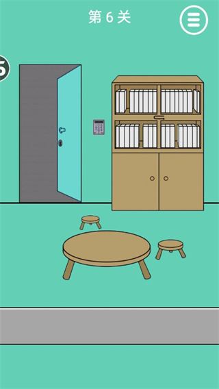 取下剪刀,用剪刀剪开墙上的画,看到暗号。点击门口的密码锁,从上到下按照墙上暗号的左右顺序,依次点击左右,即可过关。