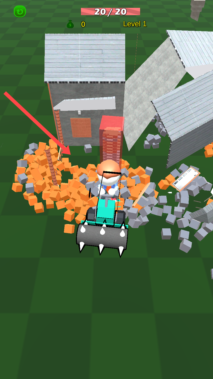 2、通过不断撞击建筑,将其摧毁成方块碎片,当进度条显示达到“20/20”时,完成当前关卡任务。