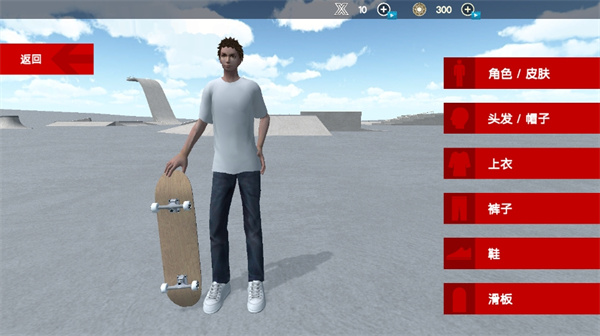 1、打开游戏界面点击开始游戏先去帮助人物角色来搭配服装�� 型,然后再去选择滑板花色开始进入到场地进行闯关挑战。