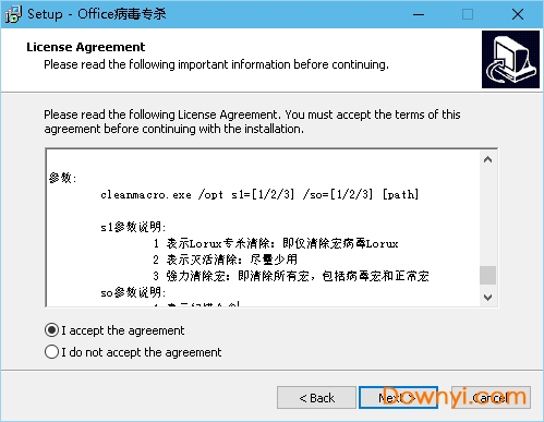 cleanmacro.exe /opt s1=3 /so=2 c:virus