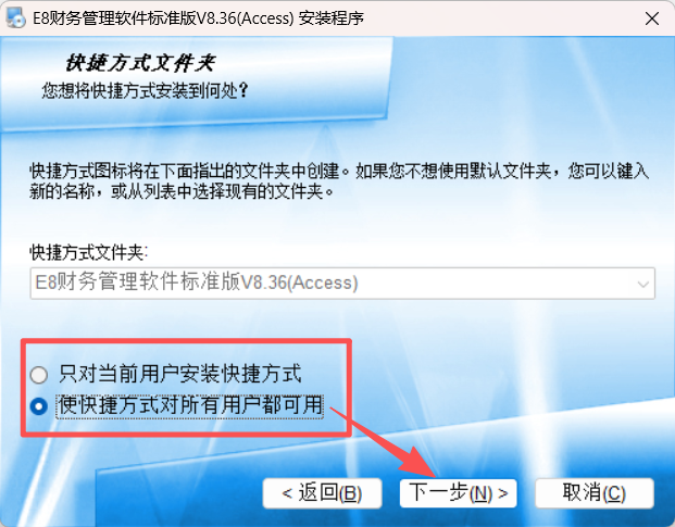 5、最后根据需求,选择支队当前用户安装快捷方式或者是便快捷方式对所有用户都可用,点击下一步之后即可完成安装。