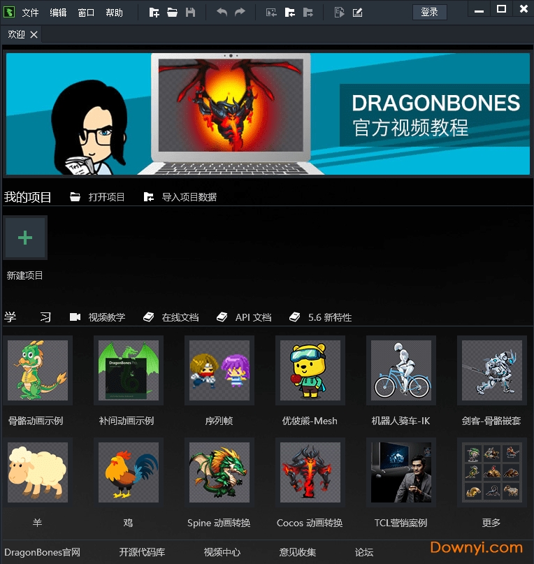 dragonbonespro是一款特别强大的动画编辑制作软件,而且软件完全是免费的,里面还自带各种的动画示例效果,让大家可以作为参考,使用起来就不会感觉到困难,界面也是全中文的,有需要的话可以前来下载使用。