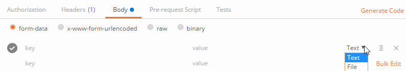 可以上传一个文件作为key的value提交(如上传文件)。但该文件不会作为历史保存,只能在每次需要发送请求的时候,重新添加文件。
