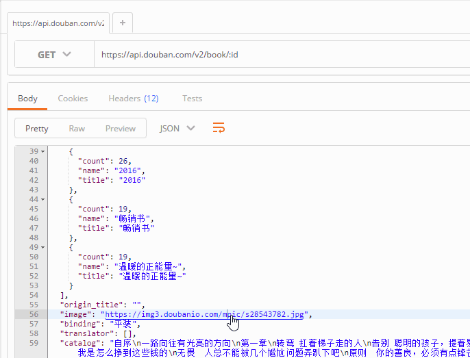 格式化了json和xml,方便查看。 点击里面的url,postman会创建一个request: