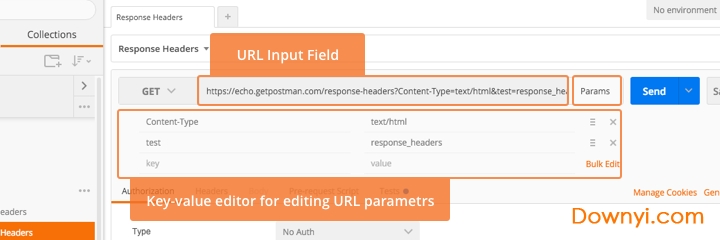 postman界面分为两部分:左边的sidebar 右边的request builder:快速创建几乎所有的请求