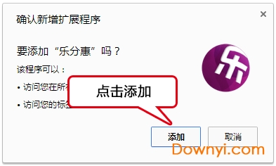 3、选中下载好的乐分惠,按住鼠标左键一直不放,并拖向google chrome浏览器界面,再放开左键,便会出现以下提示,点击添加即可: