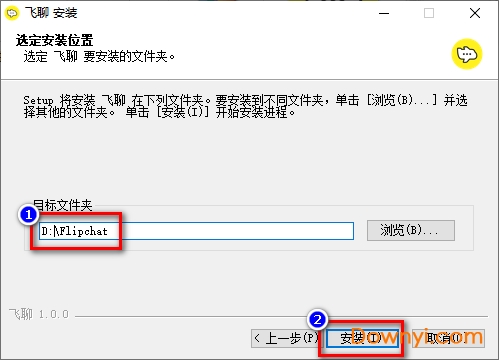 1、在下载飞聊pc版并解压,双击文件“Flipchat_1.0.0.exe”开始安装