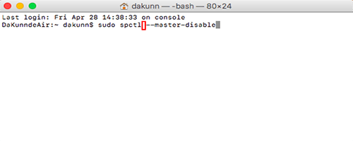sudo spctl --master-disable