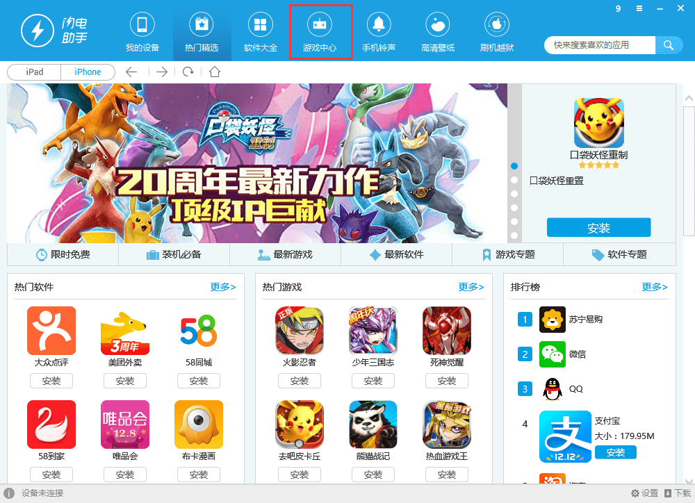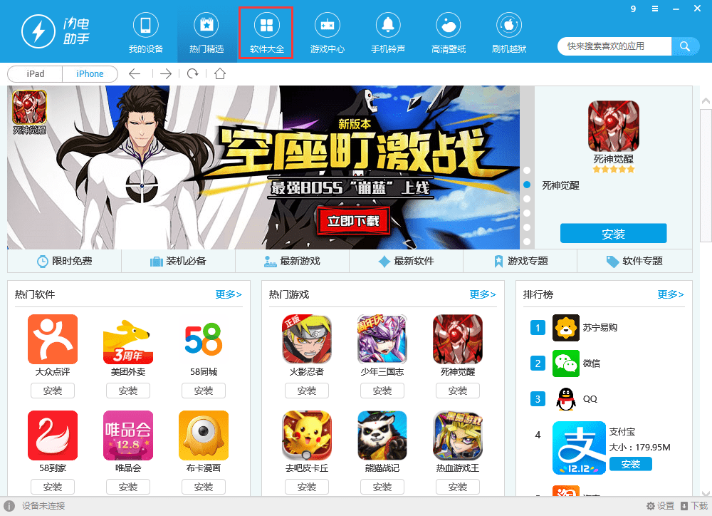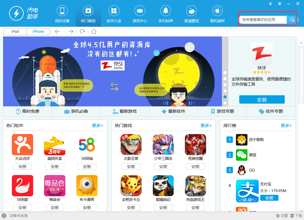 1、登入苹果闪电助手pc客户端,在电脑上安装闪电苹果助手win版;